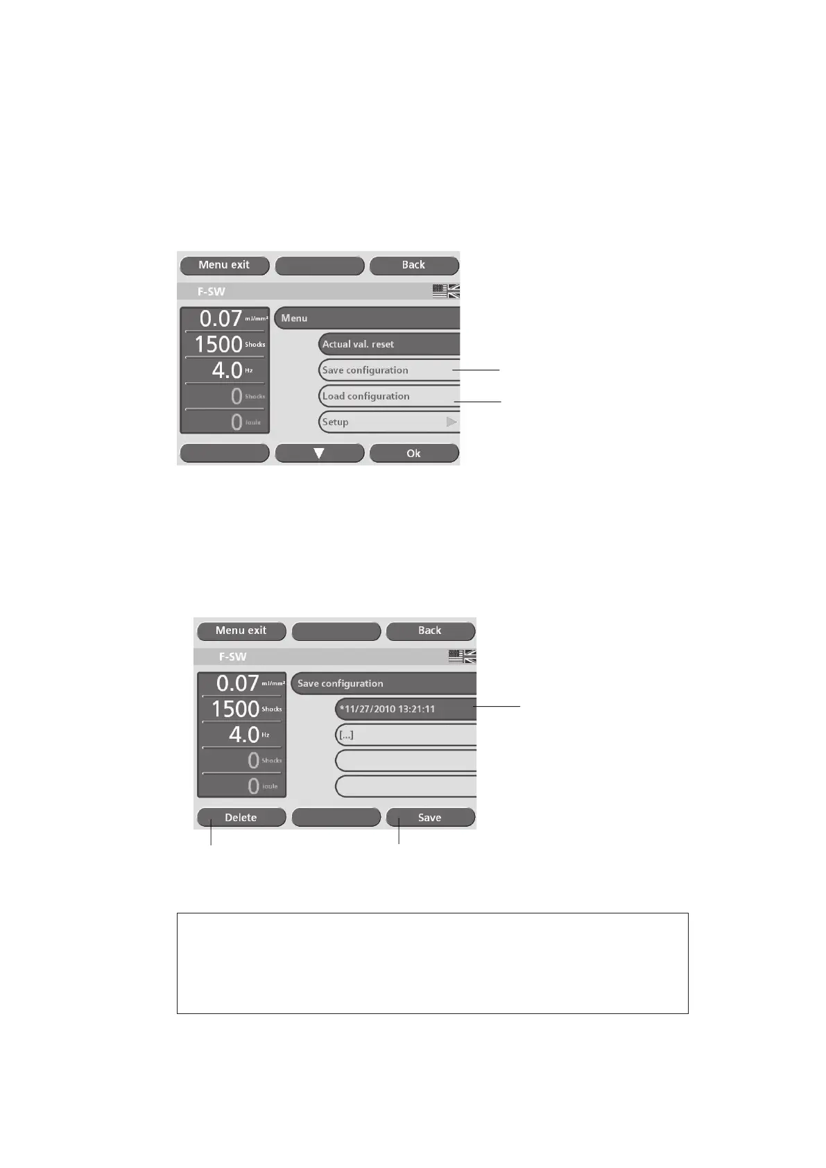 “Save conguration” sub-menu. The system automatically stores the new parameter