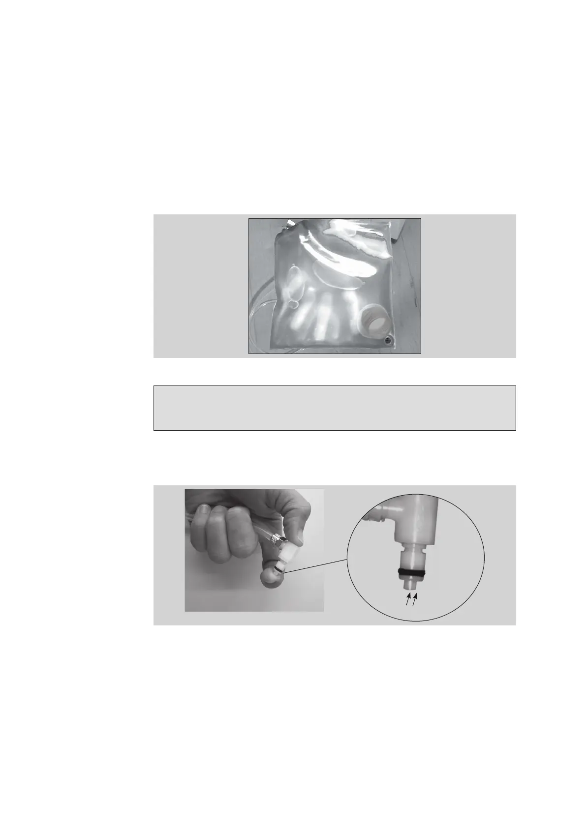 • Connect the water bag to the water tube connection on the rear of the instrument