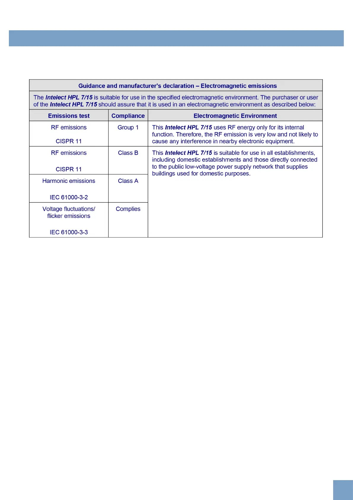 Chattanooga Intelect HPL7 - EMC Tables; Electromagnetic Compatibility (EMC) Information