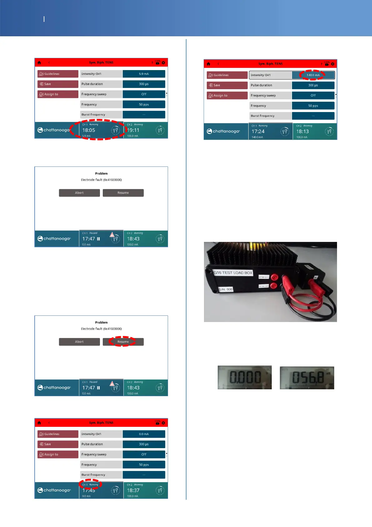 Resumption of the Electrotherapy program on CH1