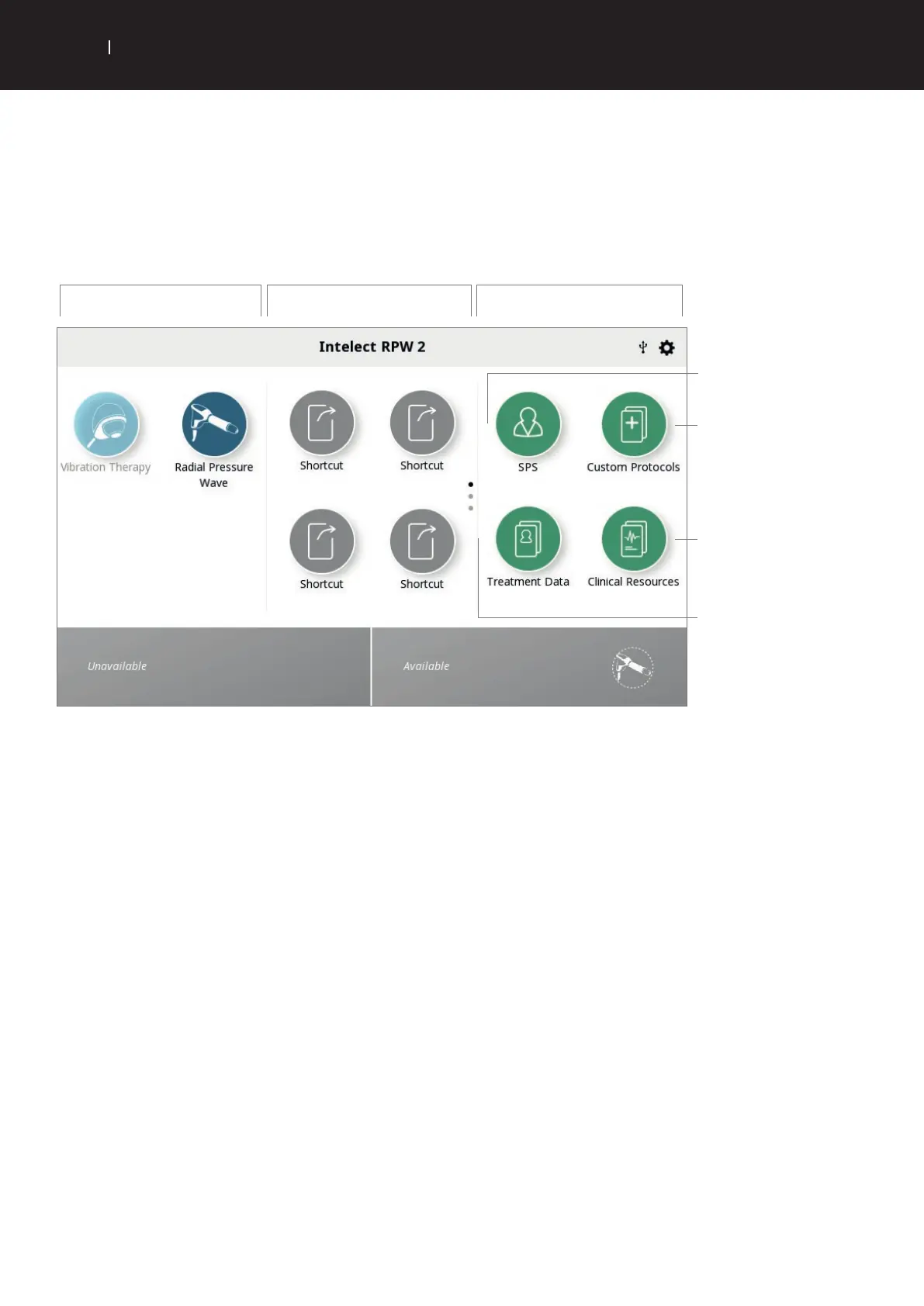 RPW  Home screen provides access to all of the system modalities and functions. The Home screen has the