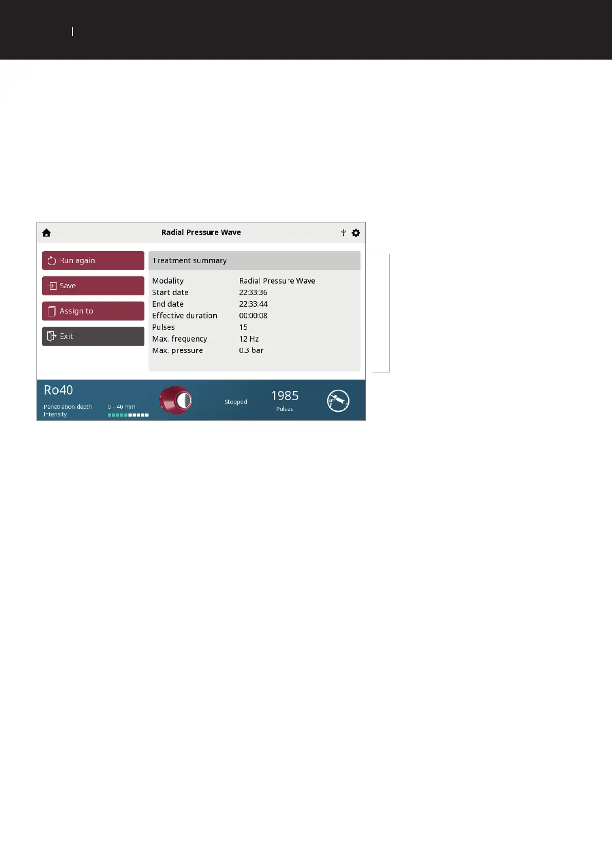 When treatment has completed, the Treatment Summary screen will appear with the following options: