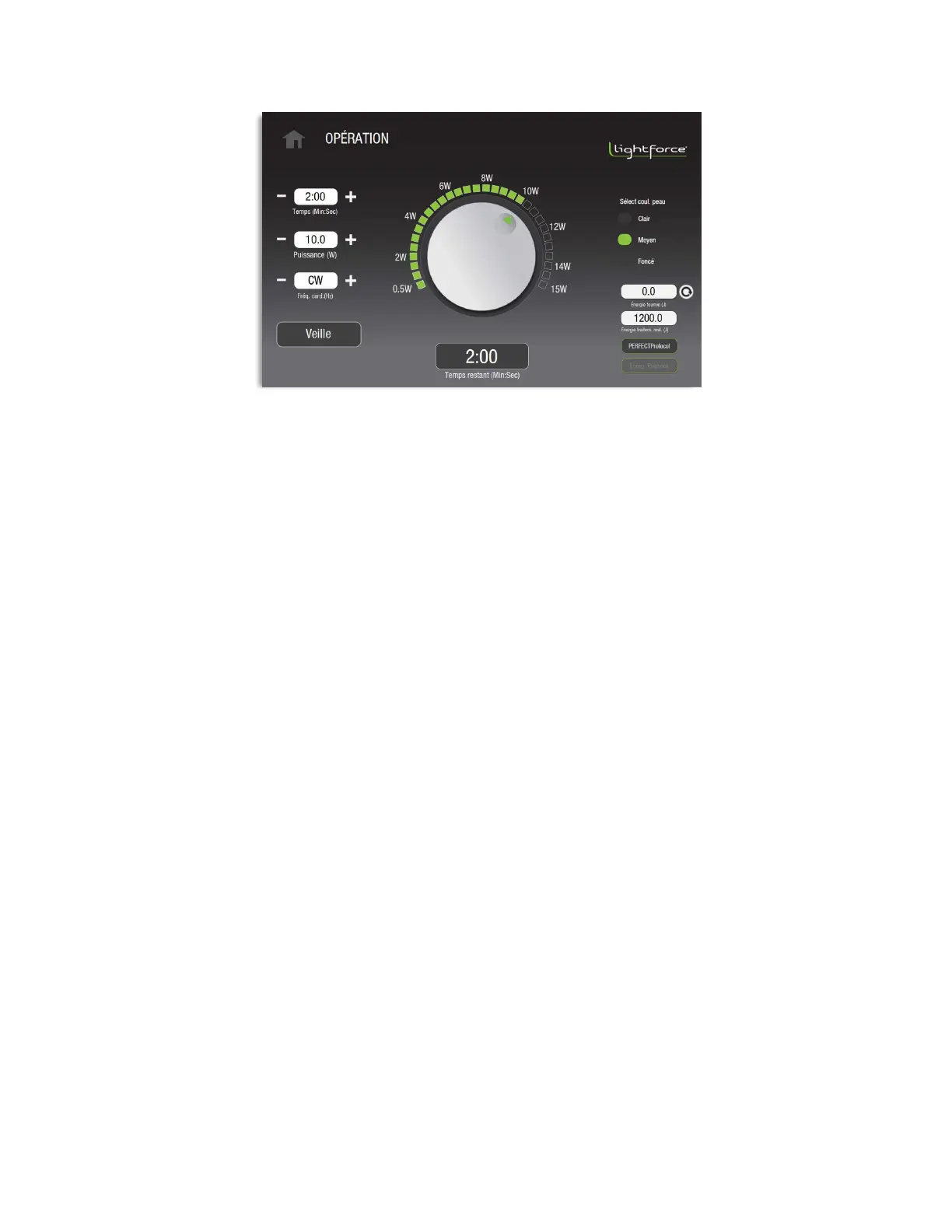 pression sur le bouton souhaité. La durée de traitement du laser sélectionné