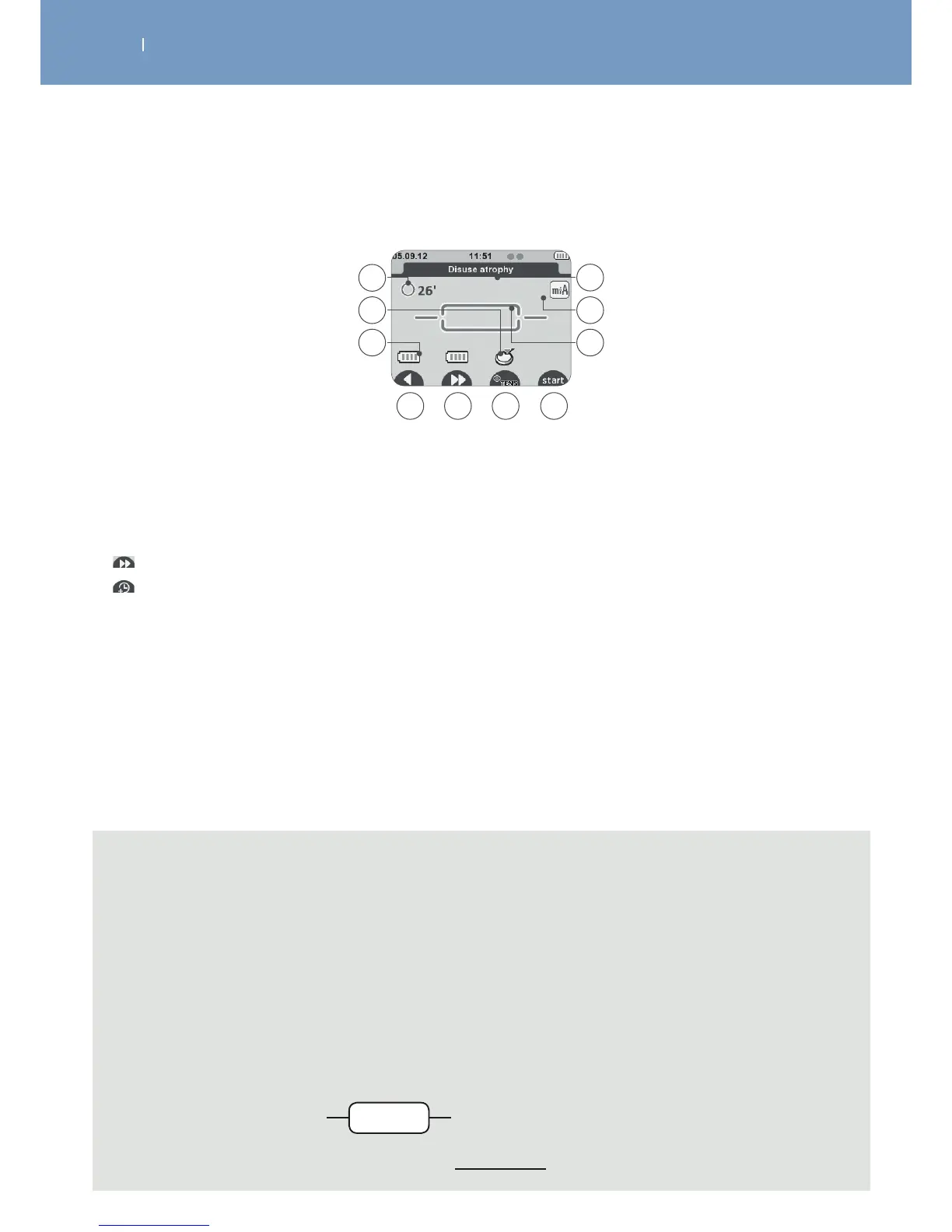- “F” the “+TENS” function allows you to combine a TENS programme with a selected basic