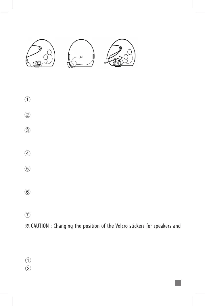 that you applied on the helmet liner. Attach the left speaker (with the shorter