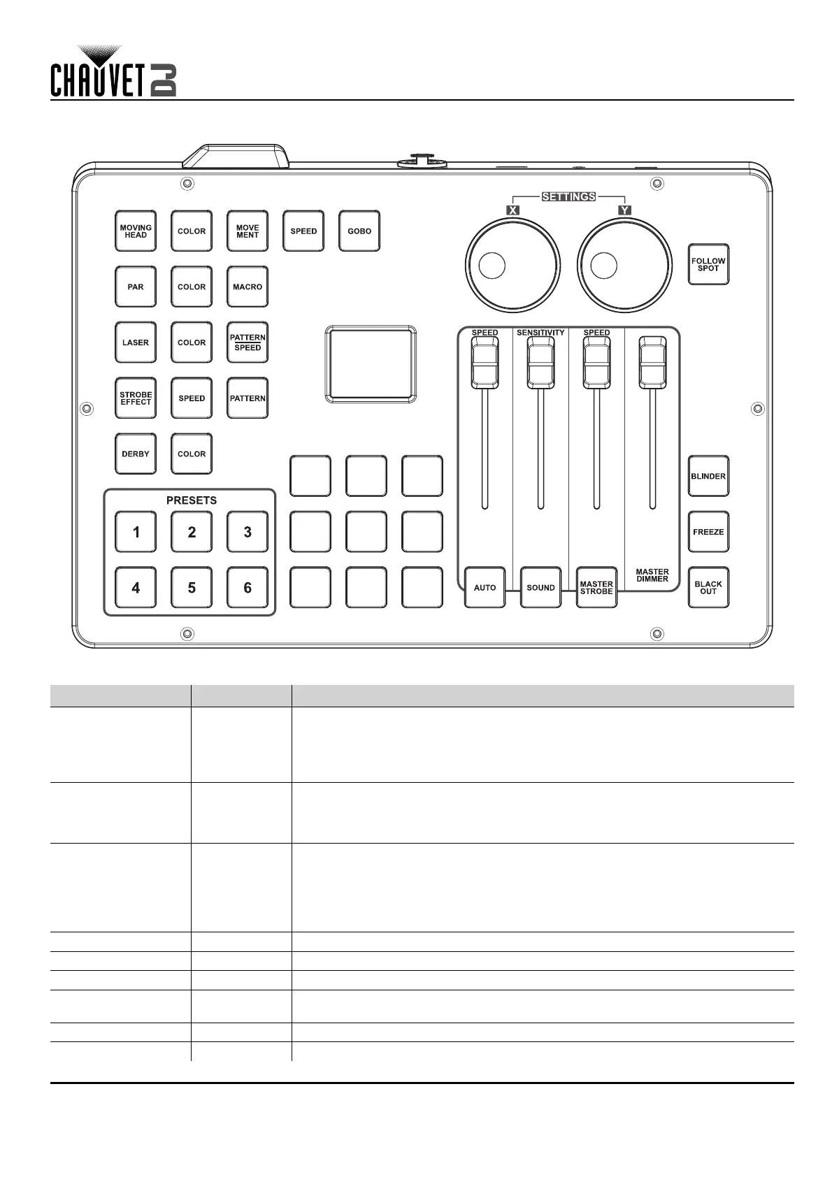 <SENSITIVITY> Fader Adjust to set the sensitivity of the microphone or aux input in sound mode