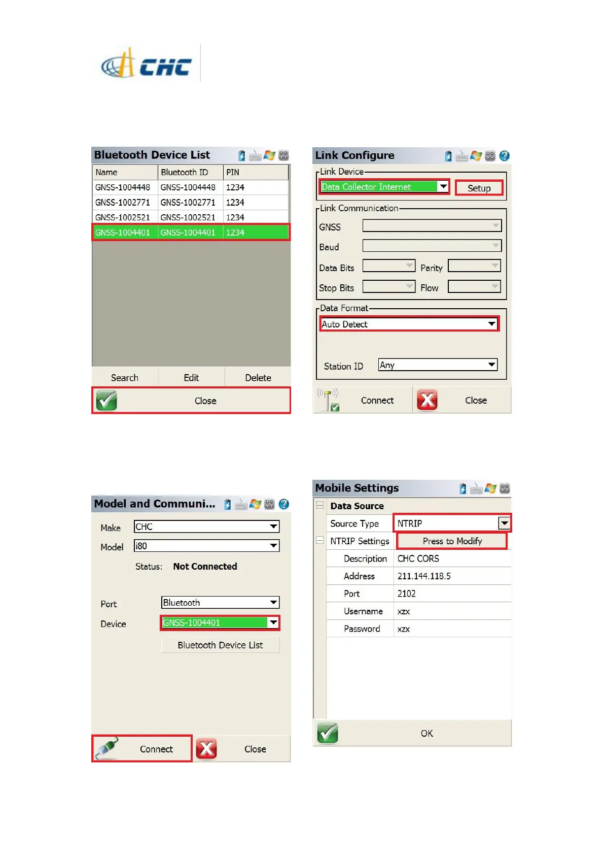 NTRIP account information.