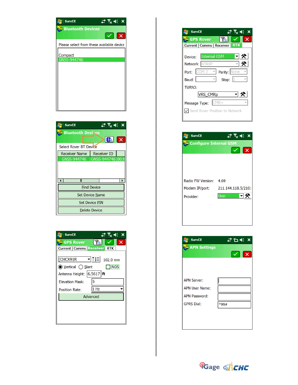 main ‘Configure Internal GSM’ screen, then the