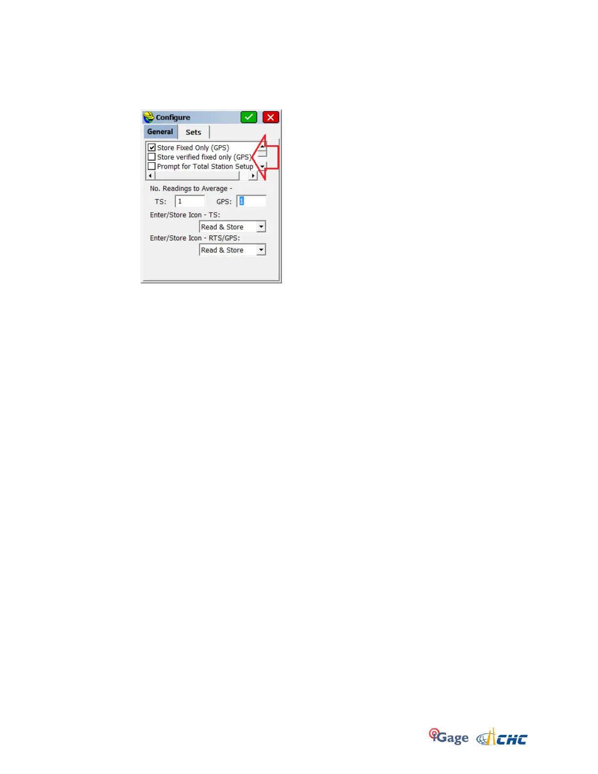 From the ‘Survey: Store Point’ menu, you can click on ‘C’ (Configuration):
