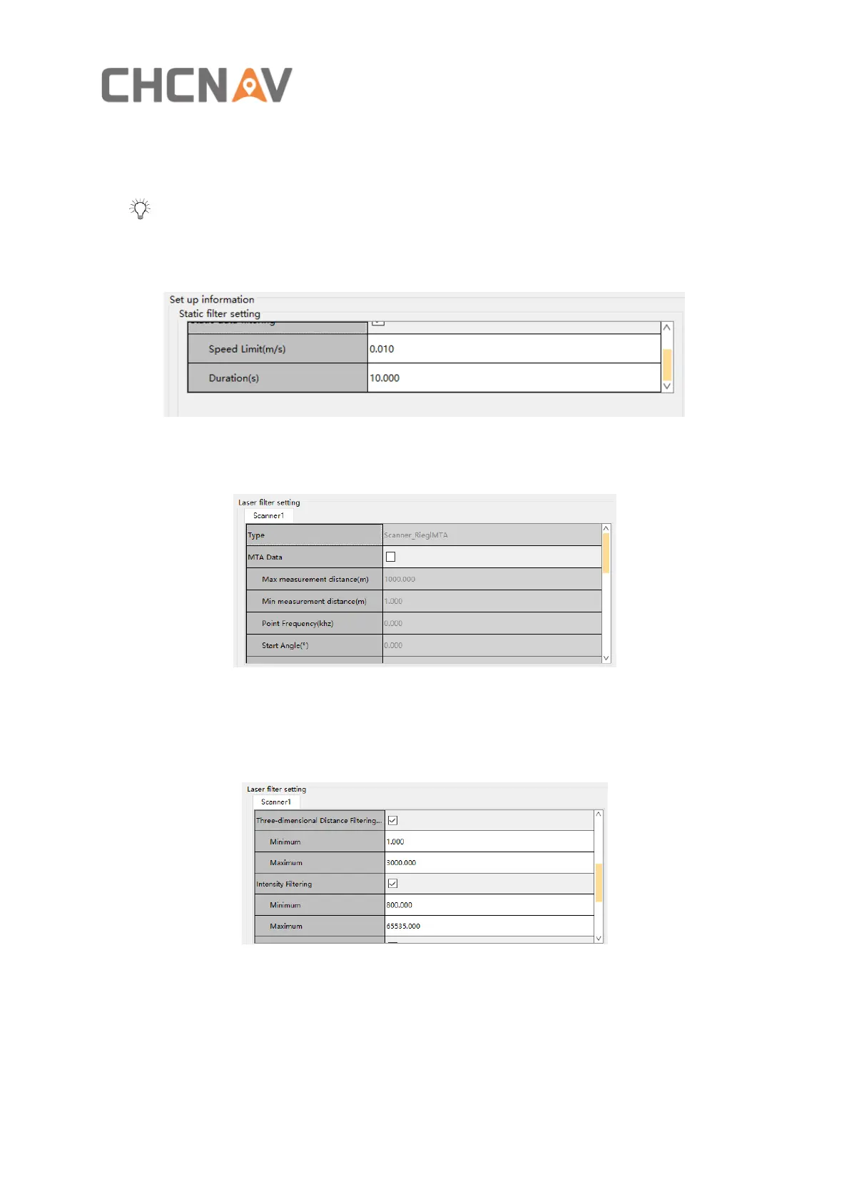 in the range will be deleted. The origin of Height Distance Filtering (m) is the laser center