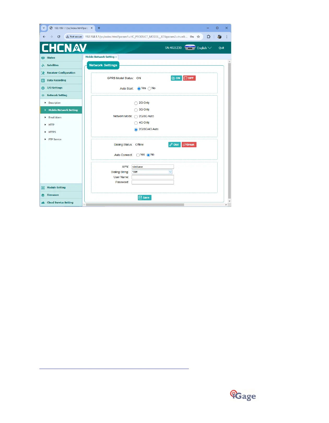 Alternatively, you can configure the Cellular modem with X-PAD, Field Genius or SurvCE/SurvPC when setting the