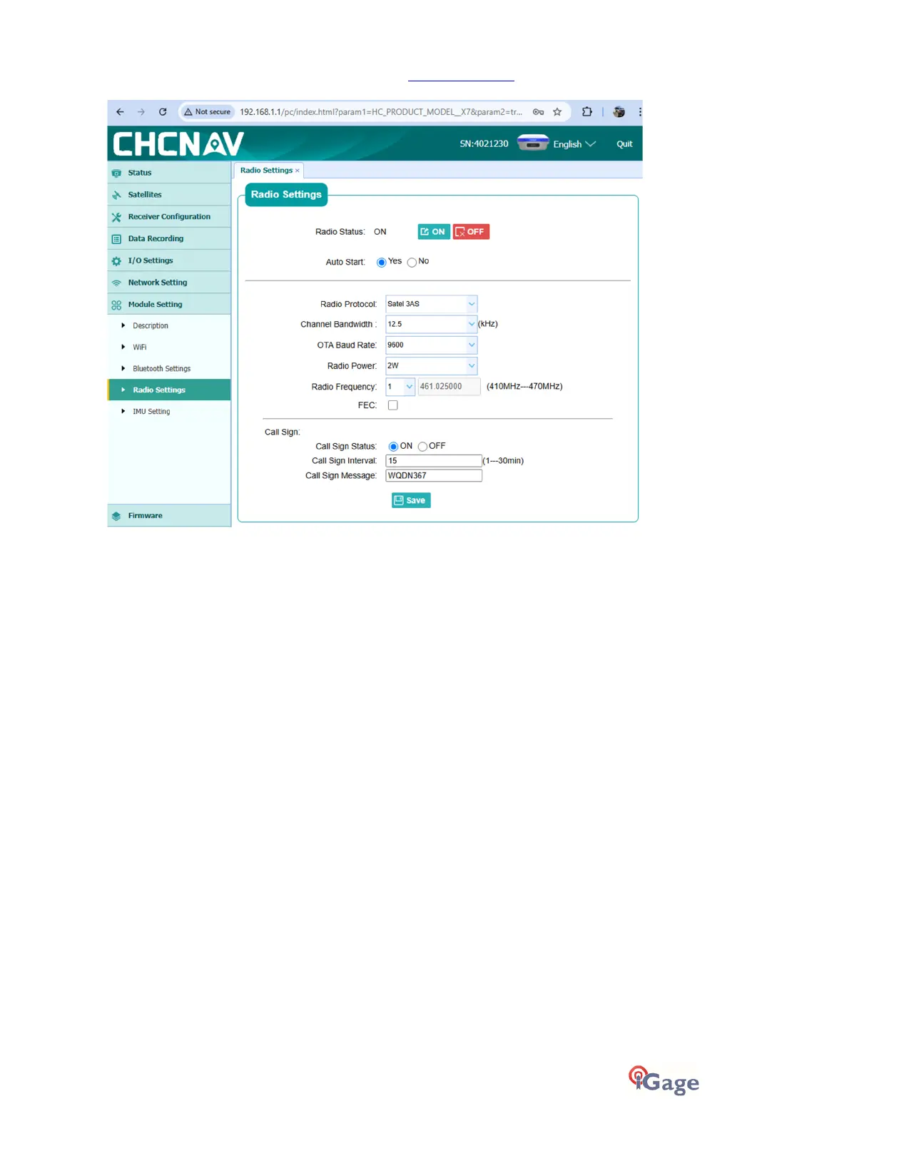 To set the broadcast FCC Call Sign, from the main menu (http://192.168.1.1), click on
