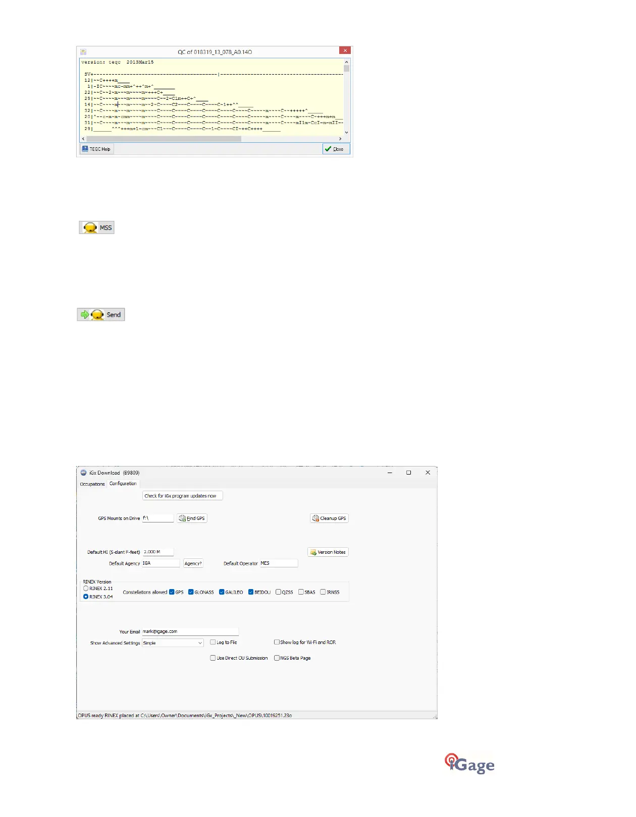 If you contact iGage for support, the technician may ask to view your computer screen remotely. Clicking the MSS