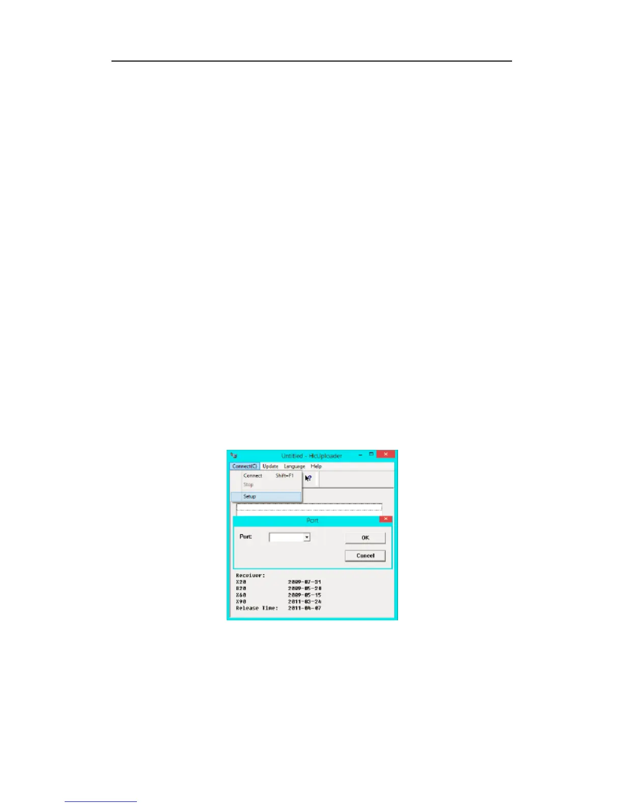 (2) Double click the proper firmware file (.exe), go to Connect → Setup, choose the