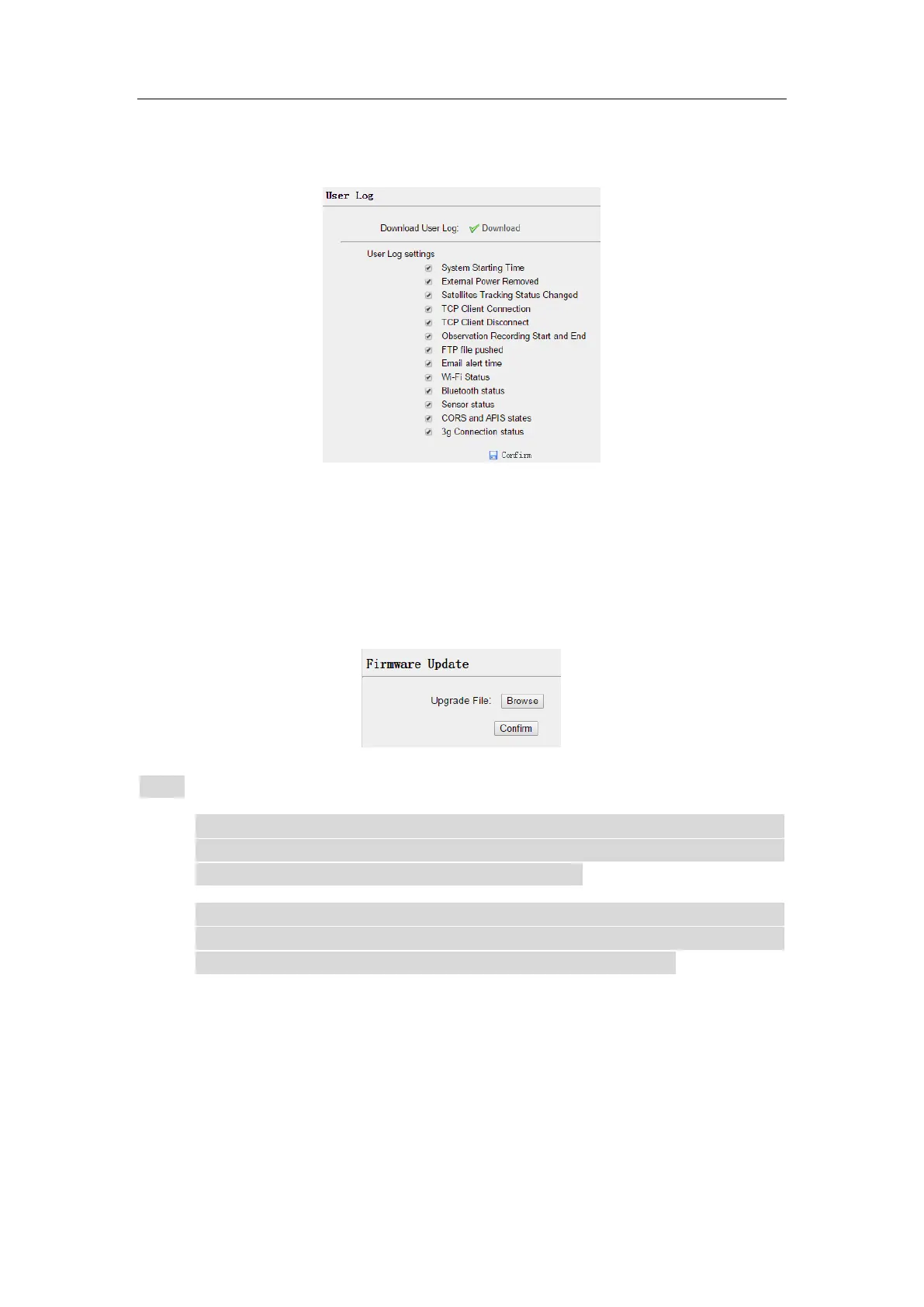 Browse button to locate the upgrade file → tap Confirm button to confirm the selected