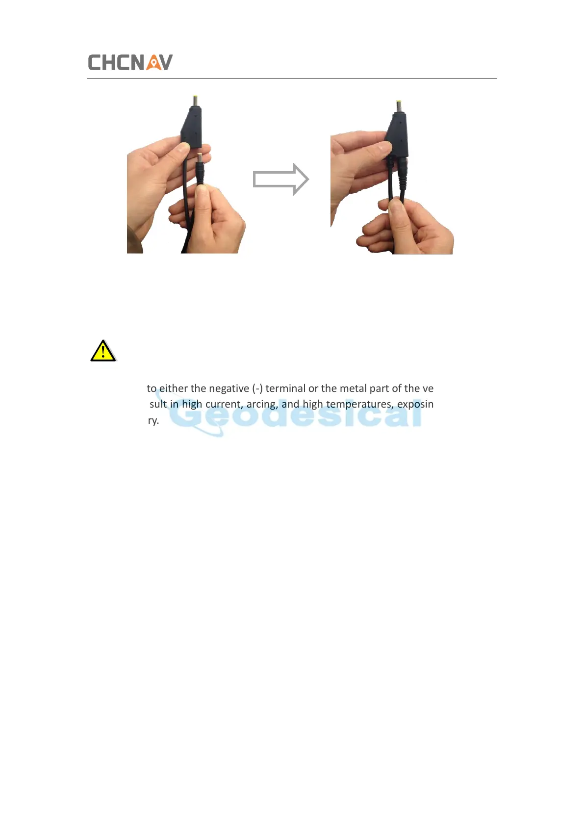 WARNING - Use caution when connecting external power cable's clip leads to a