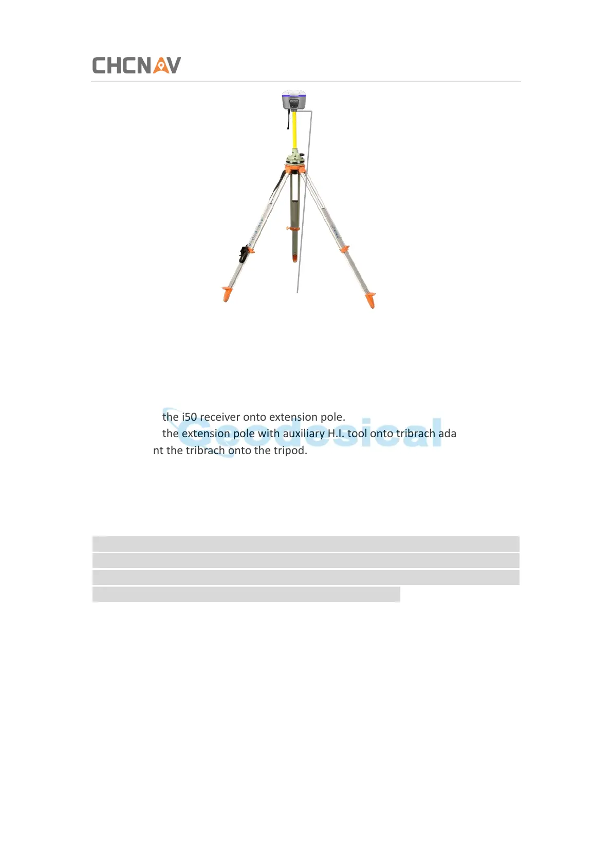 2. Screw the extension pole with auxiliary H.I. tool onto tribrach adaptor.