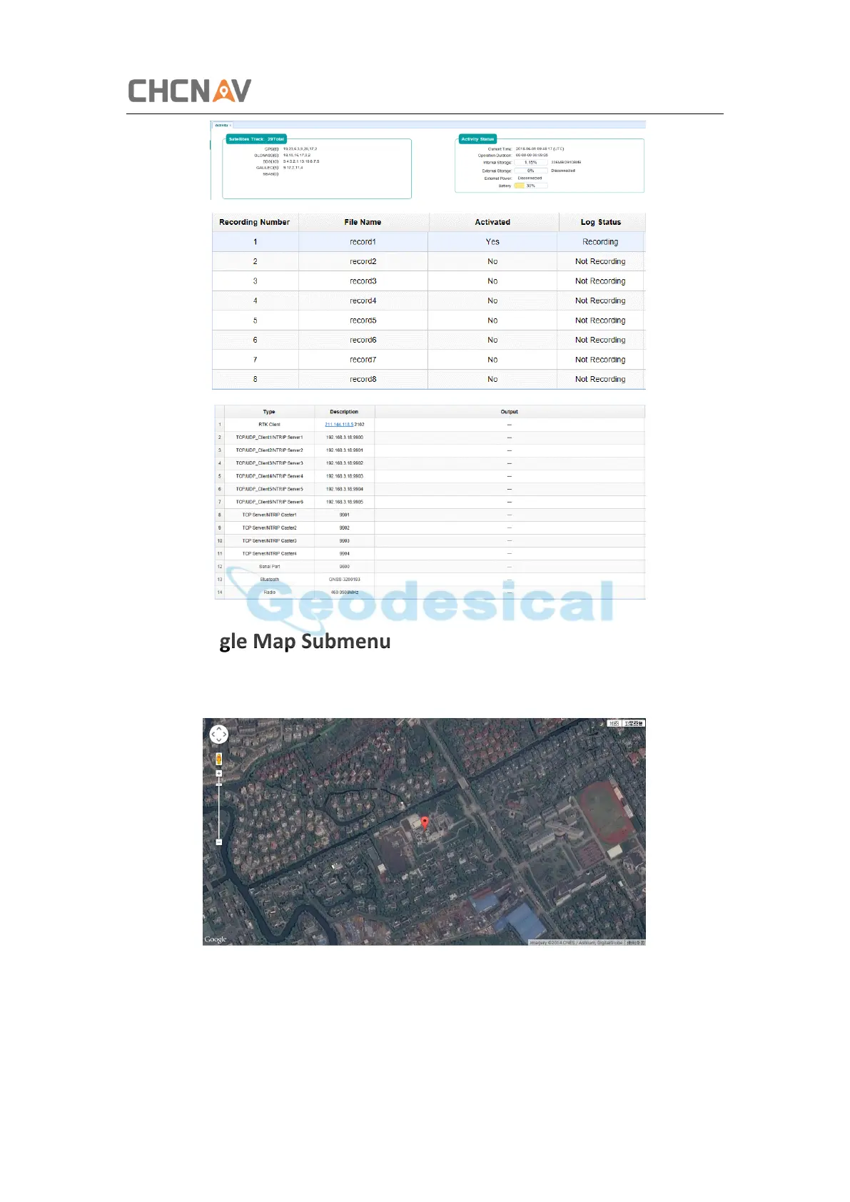 CHCNAV i50 - 5.1.3 Google Map Submenu; 5.2 Satellites Menu