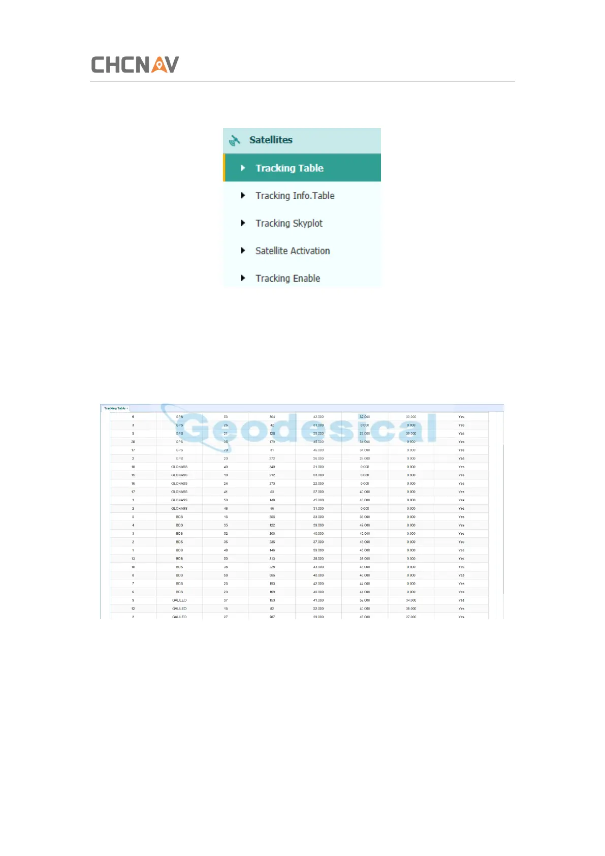 SBAS, GLONASS, BDS and Galileo constellations. These menus include tabular and