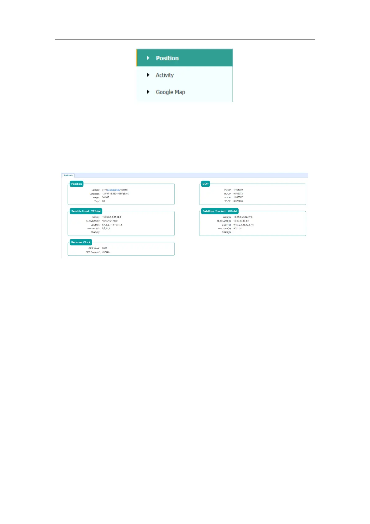 This page shows the relevant position information about the receiver's position