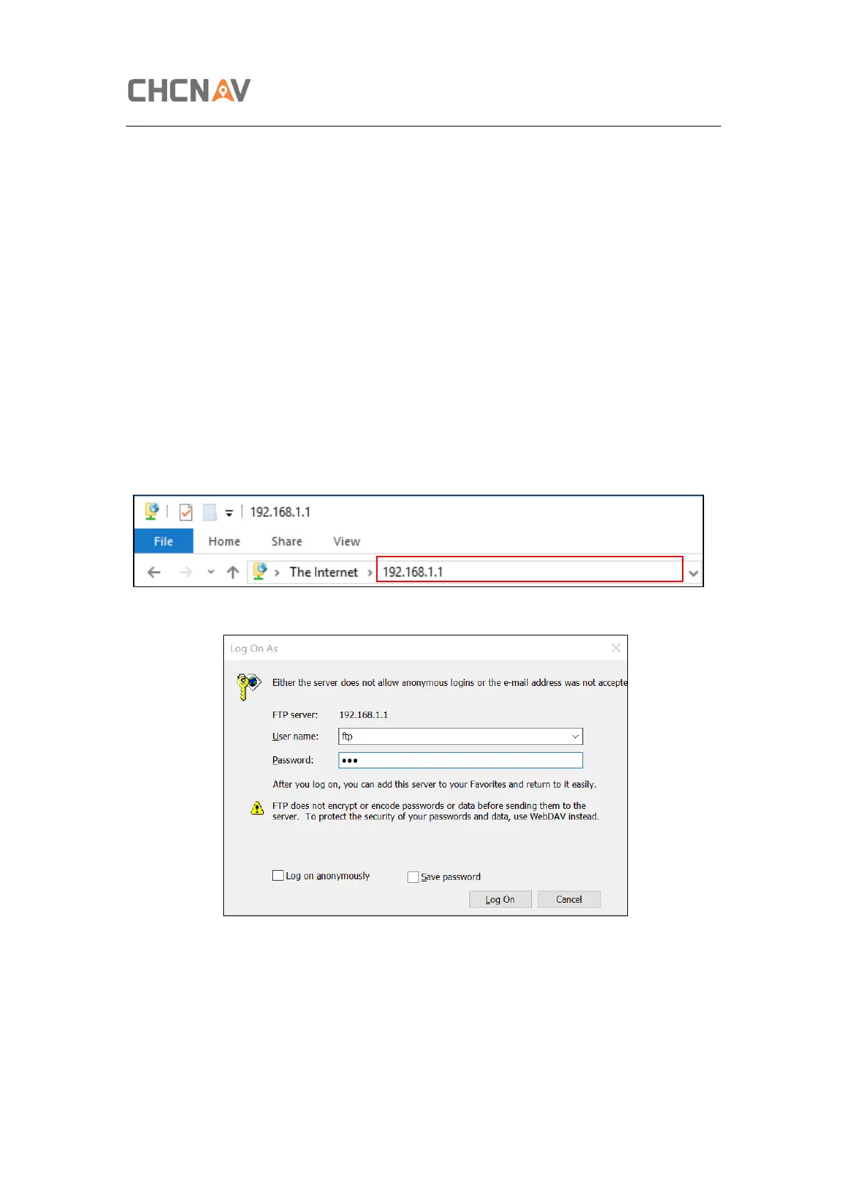“ftp:\\192.168.1.1” in the address box.