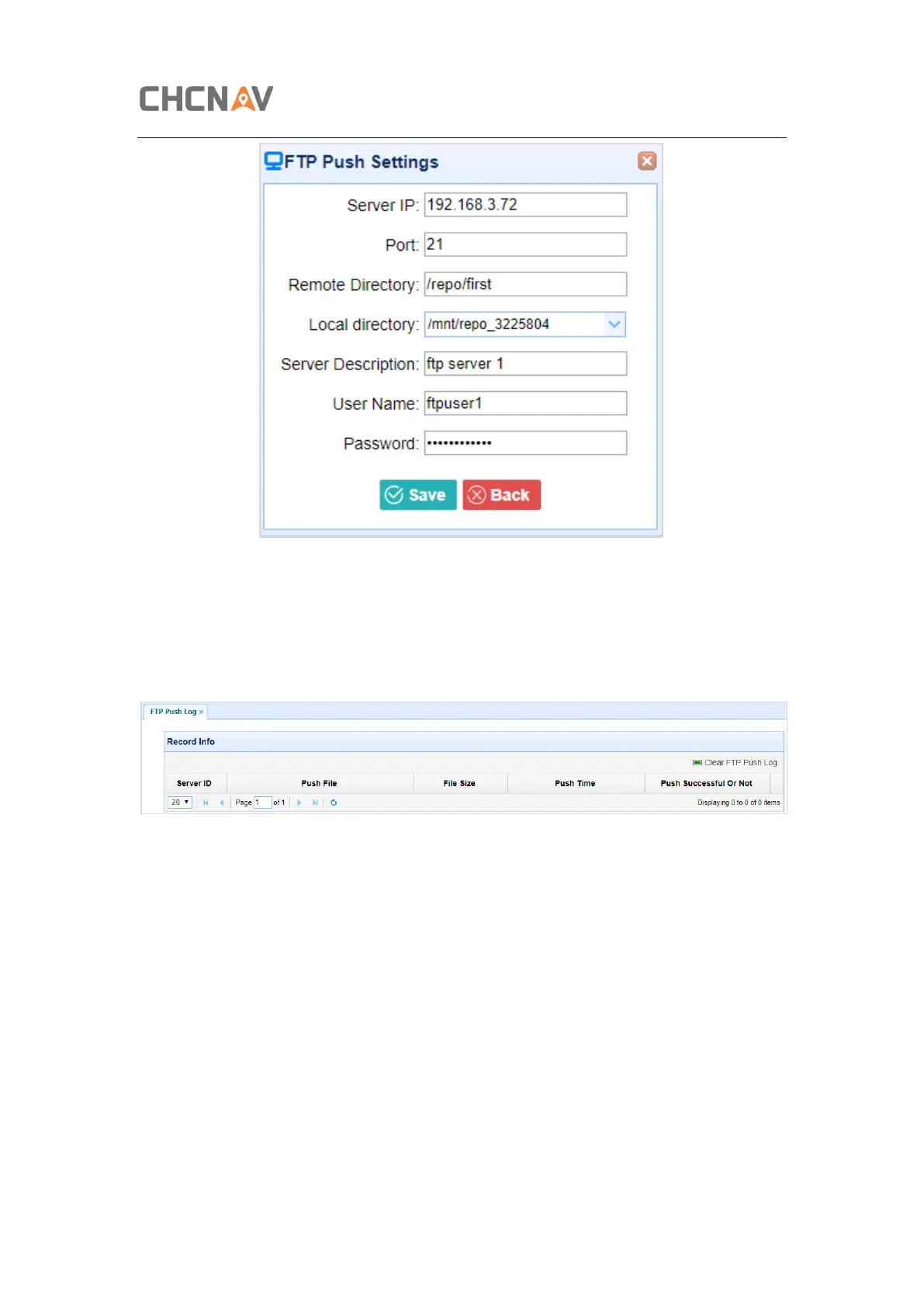 Clear Ftp Send Log button in the upper right corner to clear the log of FTP Push operations.