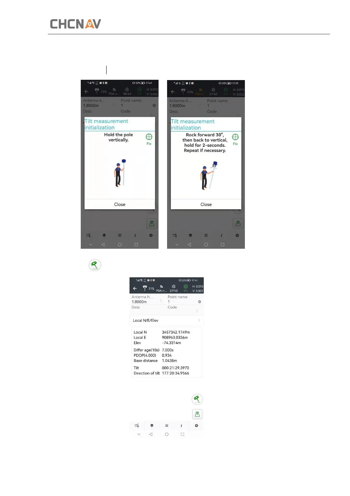 (2) Hold the pole vertical for a while and shake according to the procedures in the interface