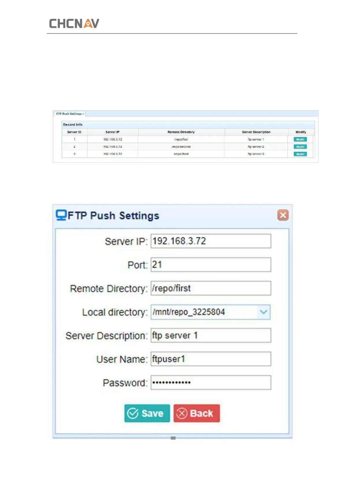 CHCNAV i83 - FTP Push Settings Submenu