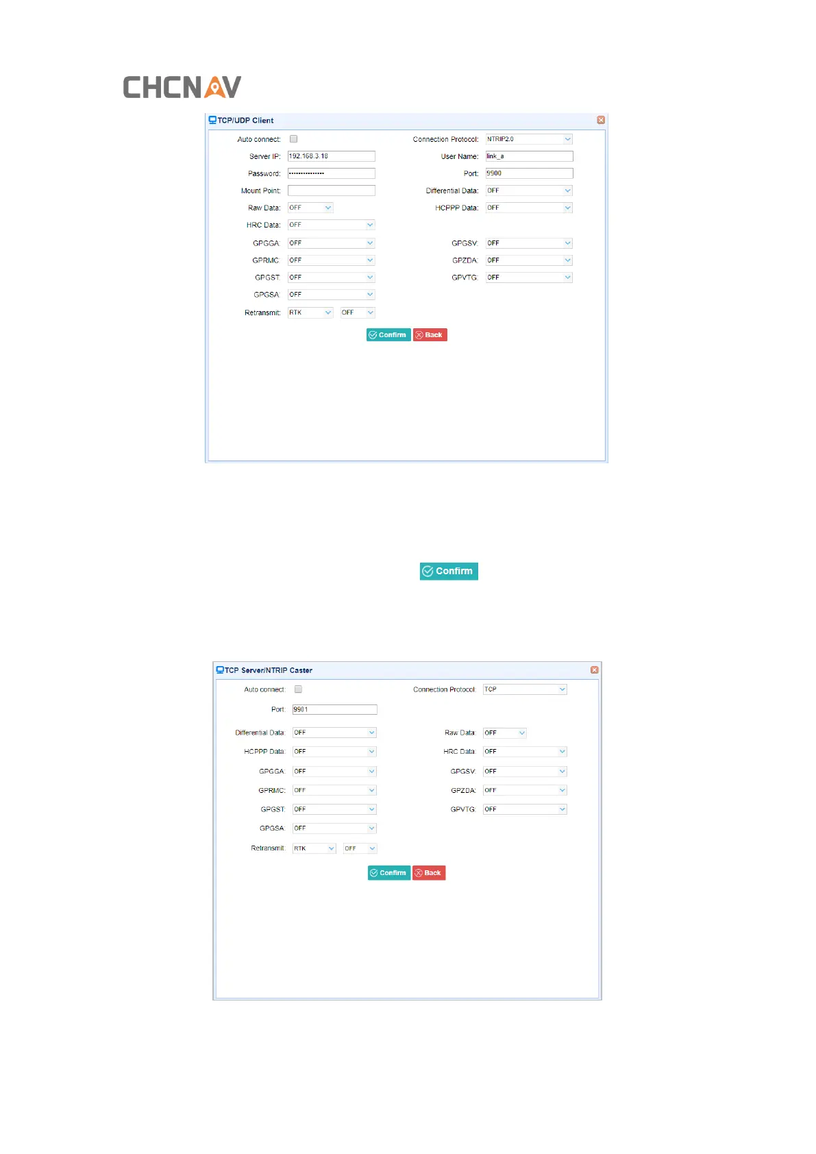 Tap the Connect button to the right of required TCP Server/NTRIP Caster→ the IO Settings