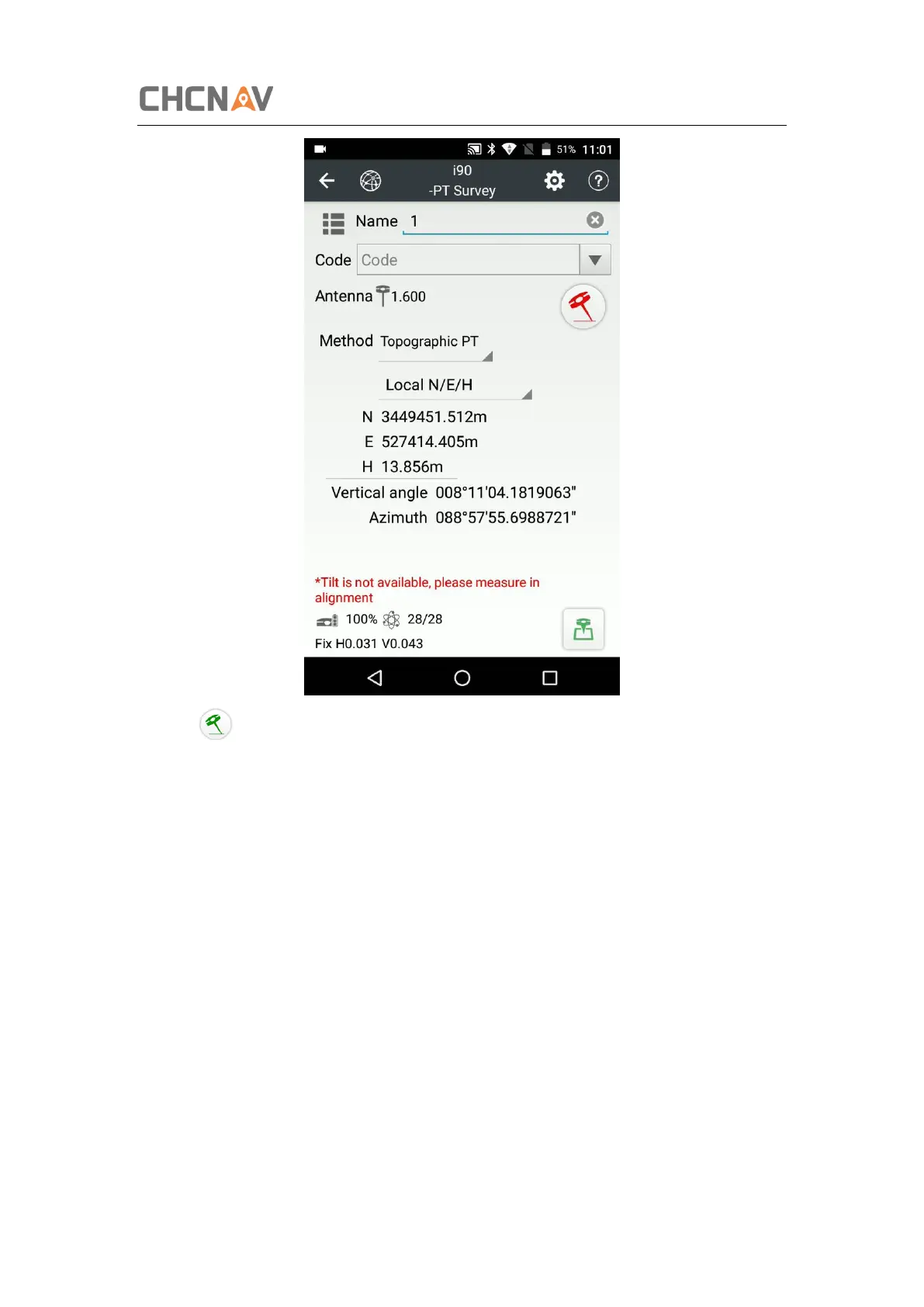 measure in alignment” (red), please shake RTK slightly from left to right or back to front until