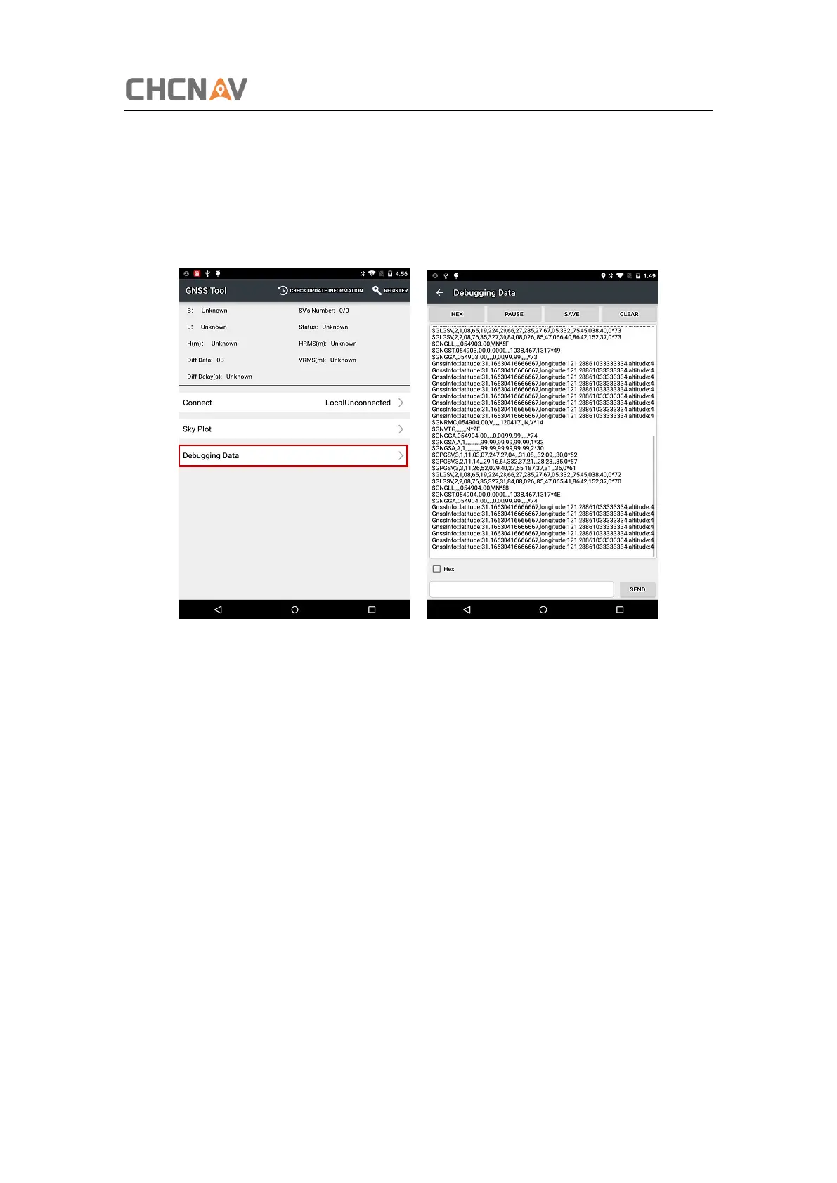Click Debugging Data to enter data debugging interface. Click HEX to change the data