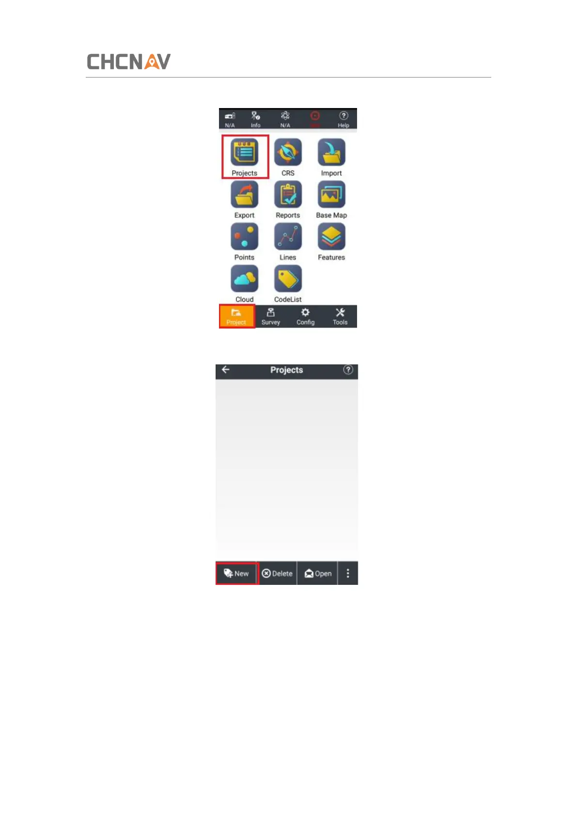 (4) Tap [New] to create a new project.
