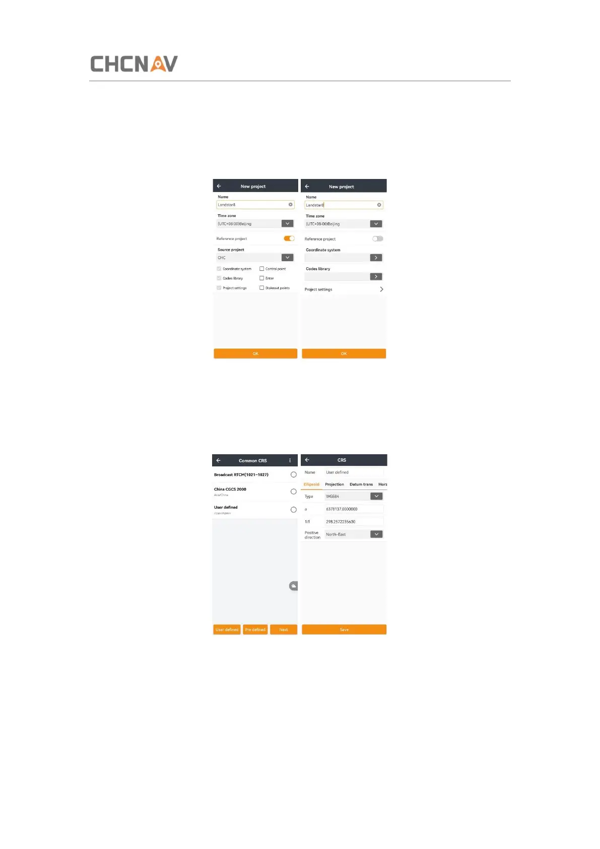 Users can create a new coordinate system or use the template of existing projects. Click User