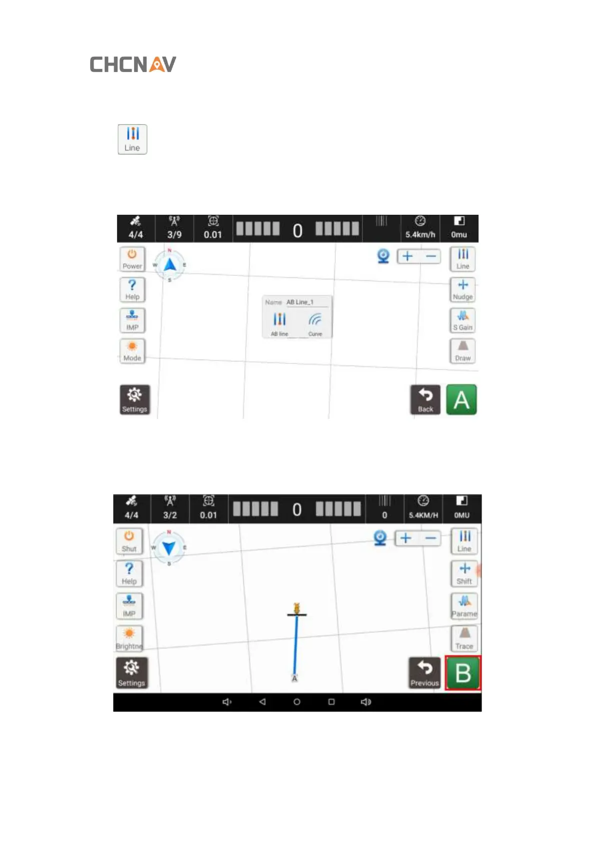 please keep the agricultural tools lifted up. After the point B is set, the navigation line is