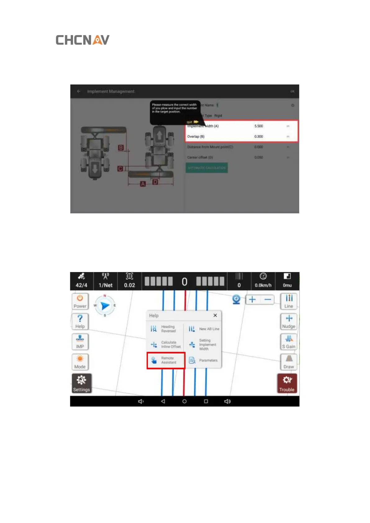 Step 2: Modify the width of agricultural implements and line spacing on [Implement width]