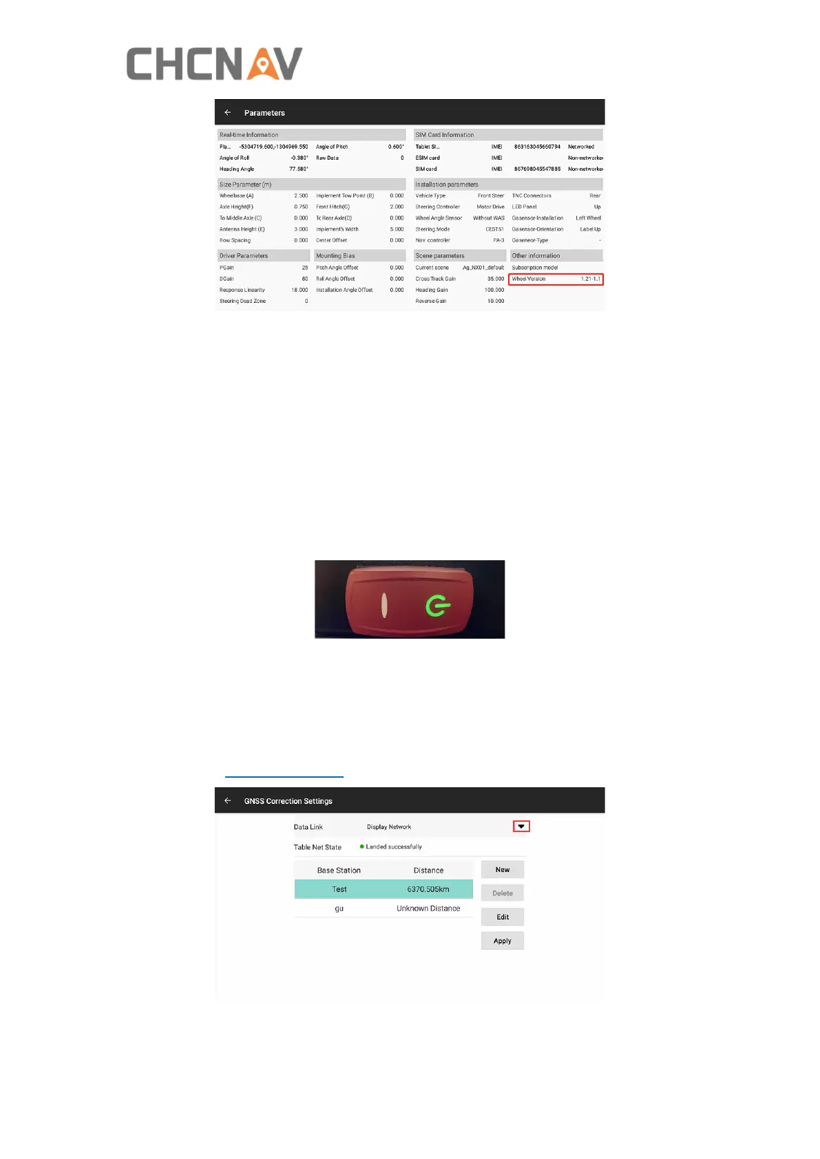 Click the status bars in the upper left corner to enter the GNSS Correction Settings,