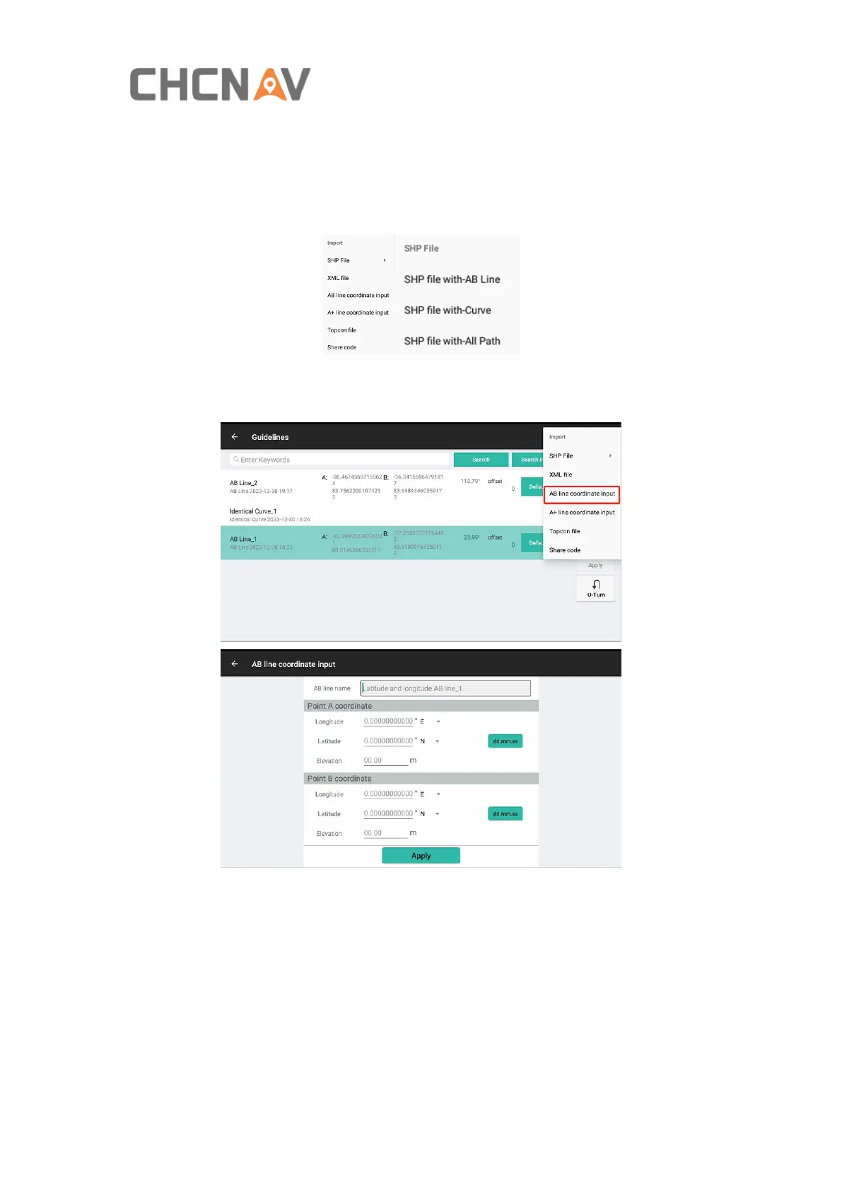 AB line with coordinate input: