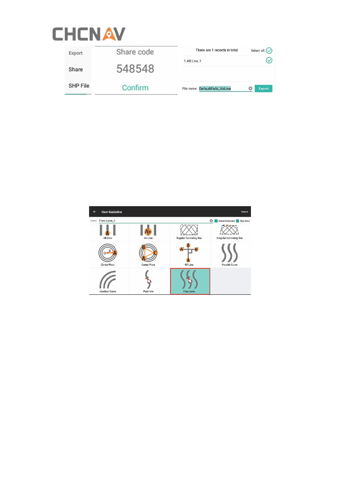 AB Line: Create a guideline by locating two points. The current location will be used