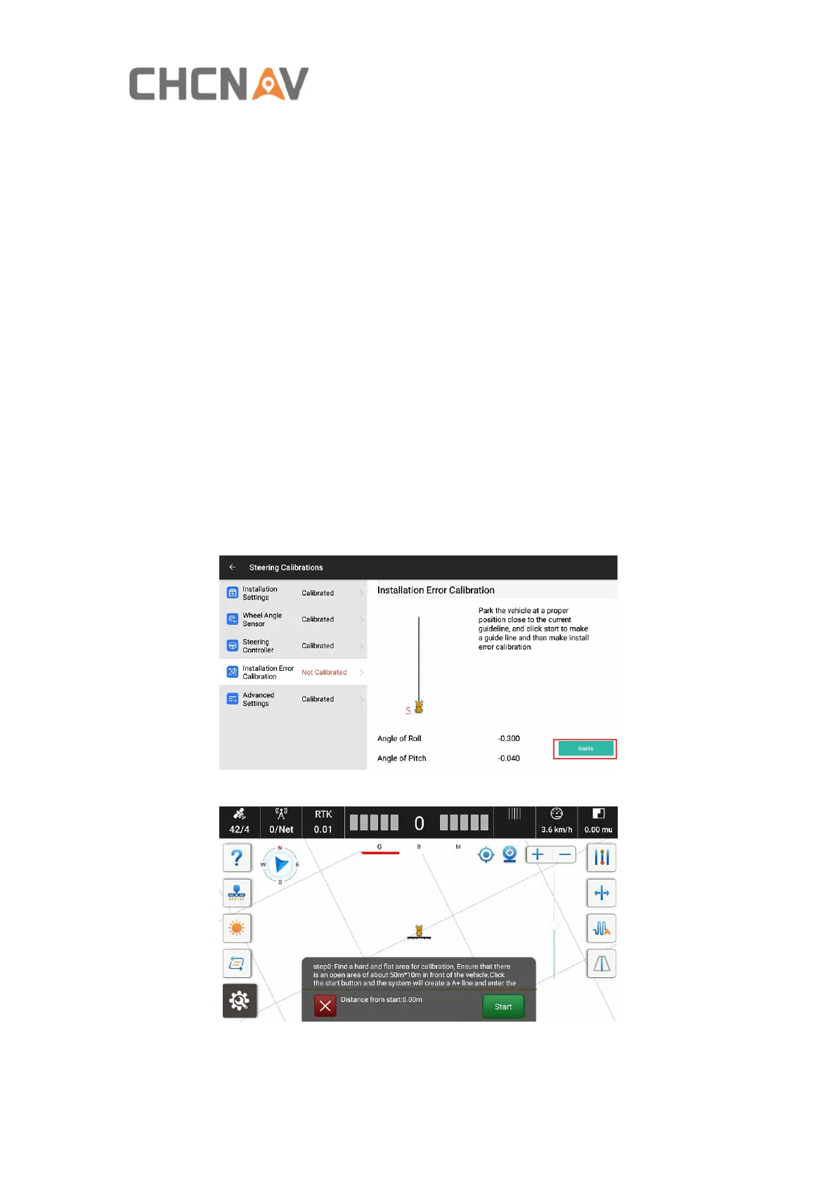 Click Guide, stop the vehicle on a flat and open place.
