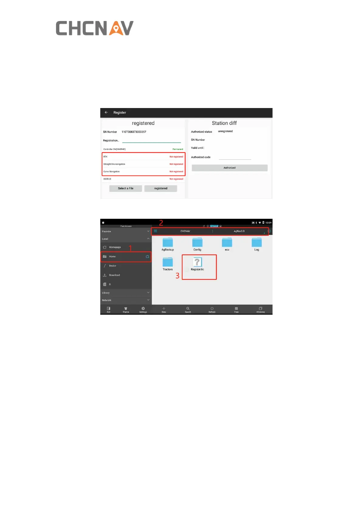 3) Copy the registration file to specific directory: Home/CHCNAV/AgNav3.0