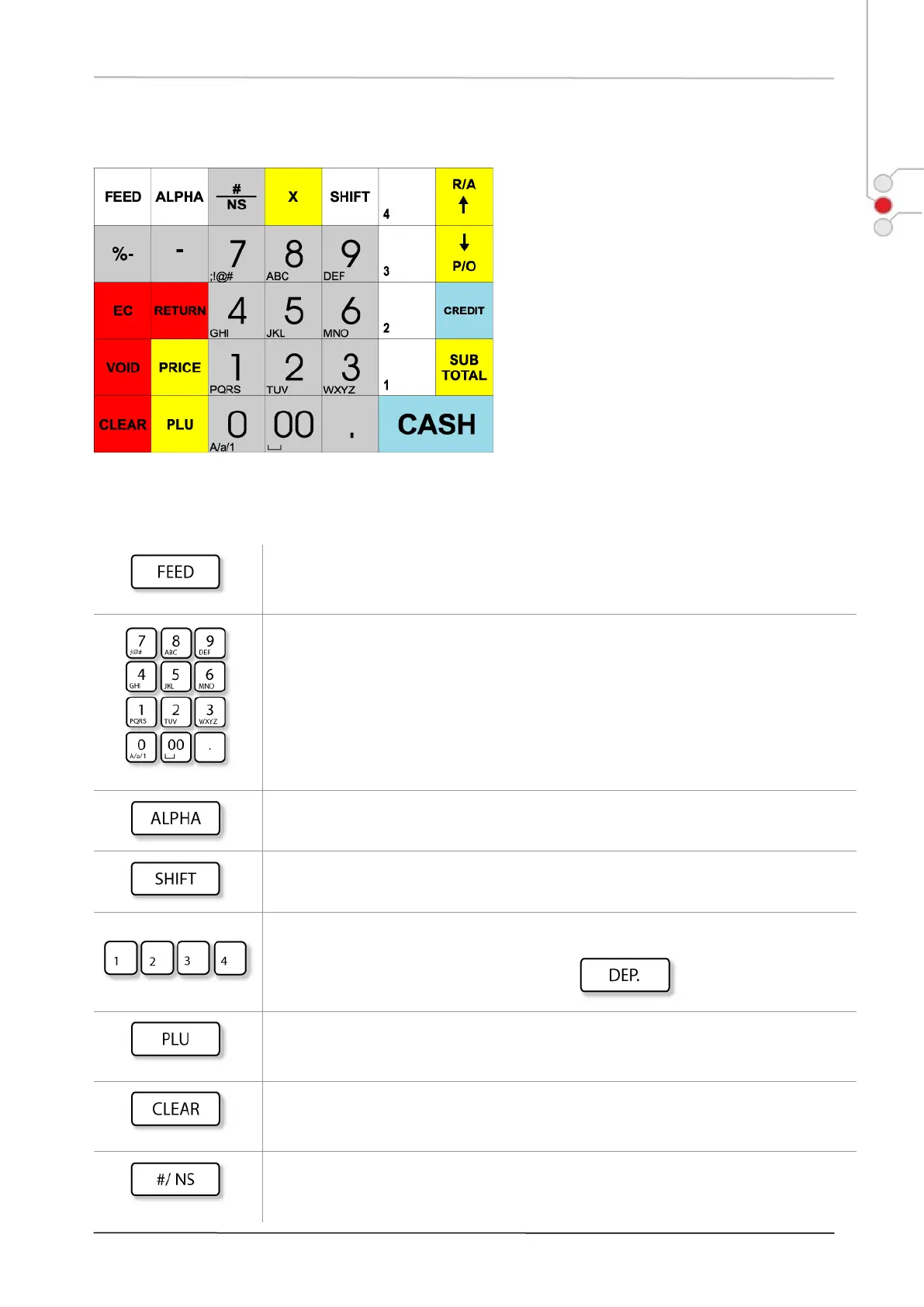 Receipt Feed key. Used to advance the receipt rolls and operated by holding it