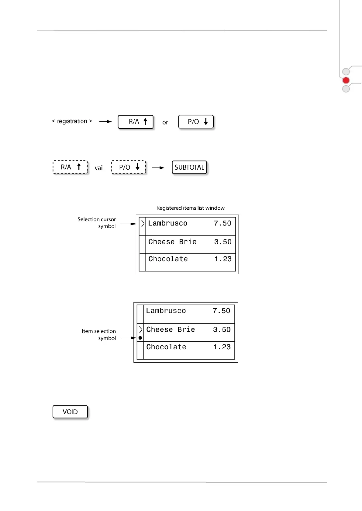 To select any of the items, press [ SUBTOTAL ] key. Selection symbol is displayed next to the item (black dot).