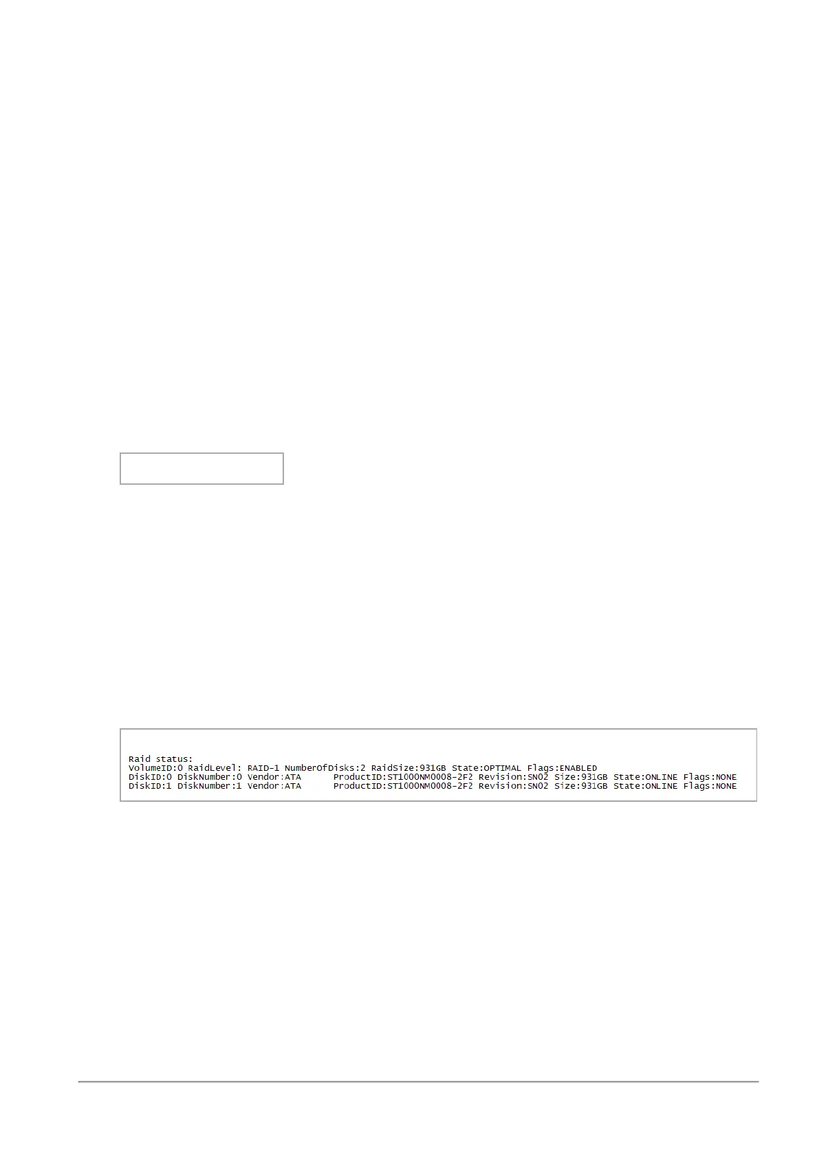After the RAID is synchronized, the RAID state (in the VolumeID line) shows OPTIMAL (this