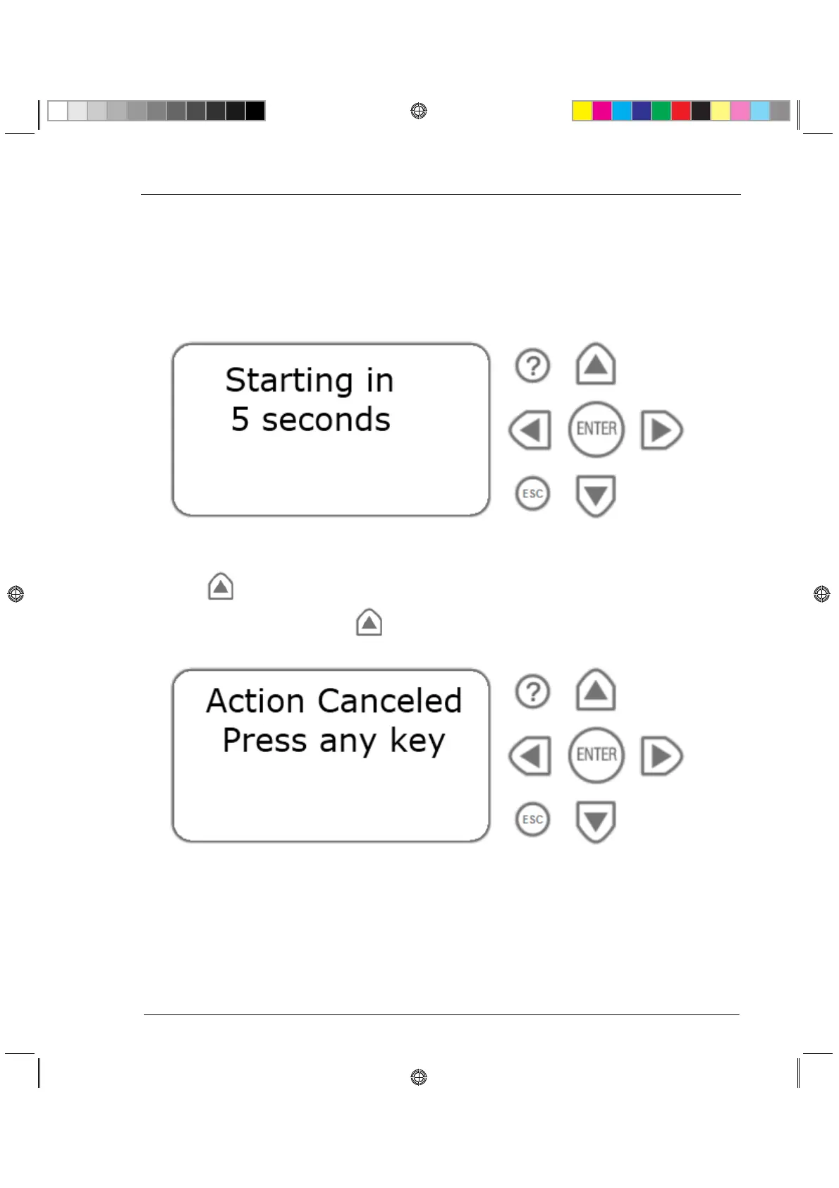 Pressing any other button causes the Action Canceled message to display: