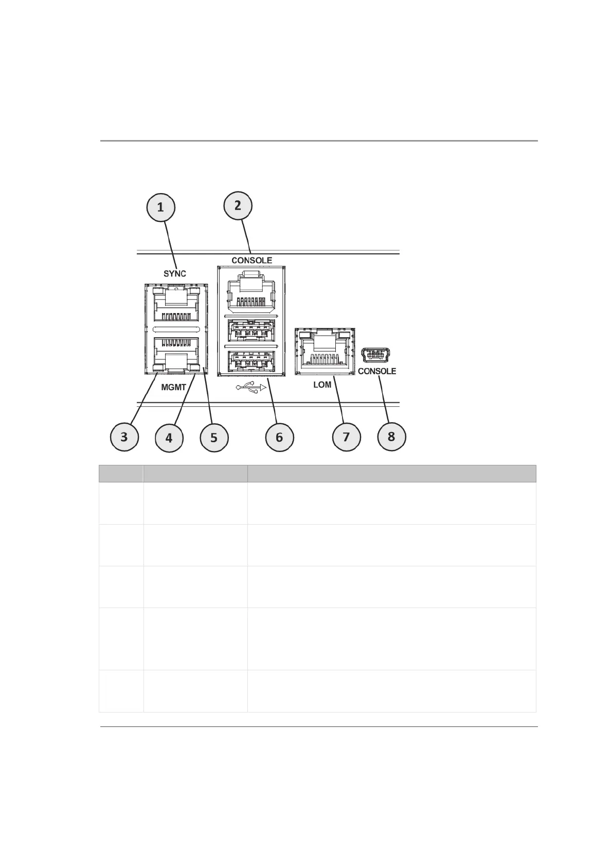 5 Management port For an Ethernet connection to a remote management