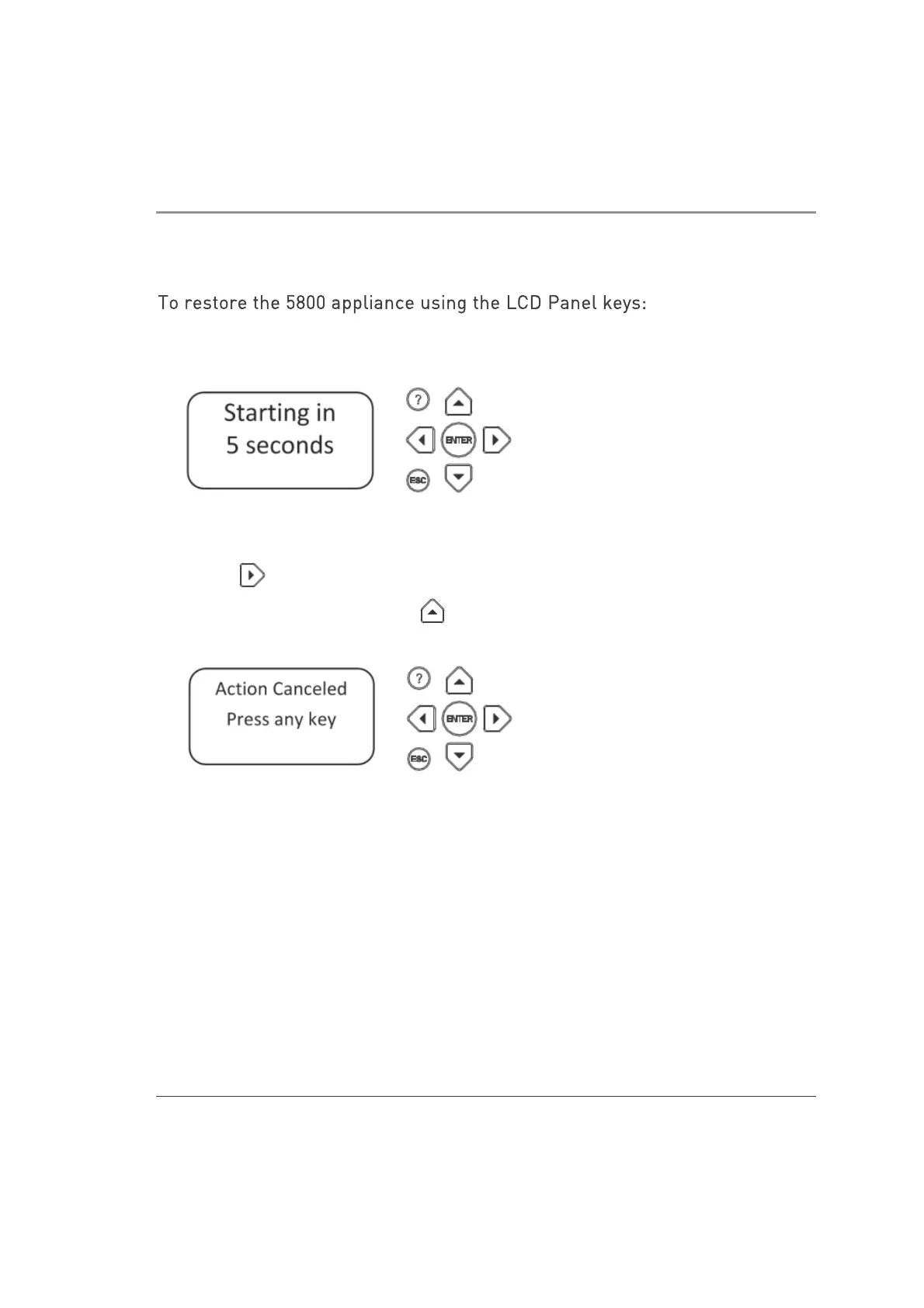To restore the 5800 appliance using the LCD Panel keys: