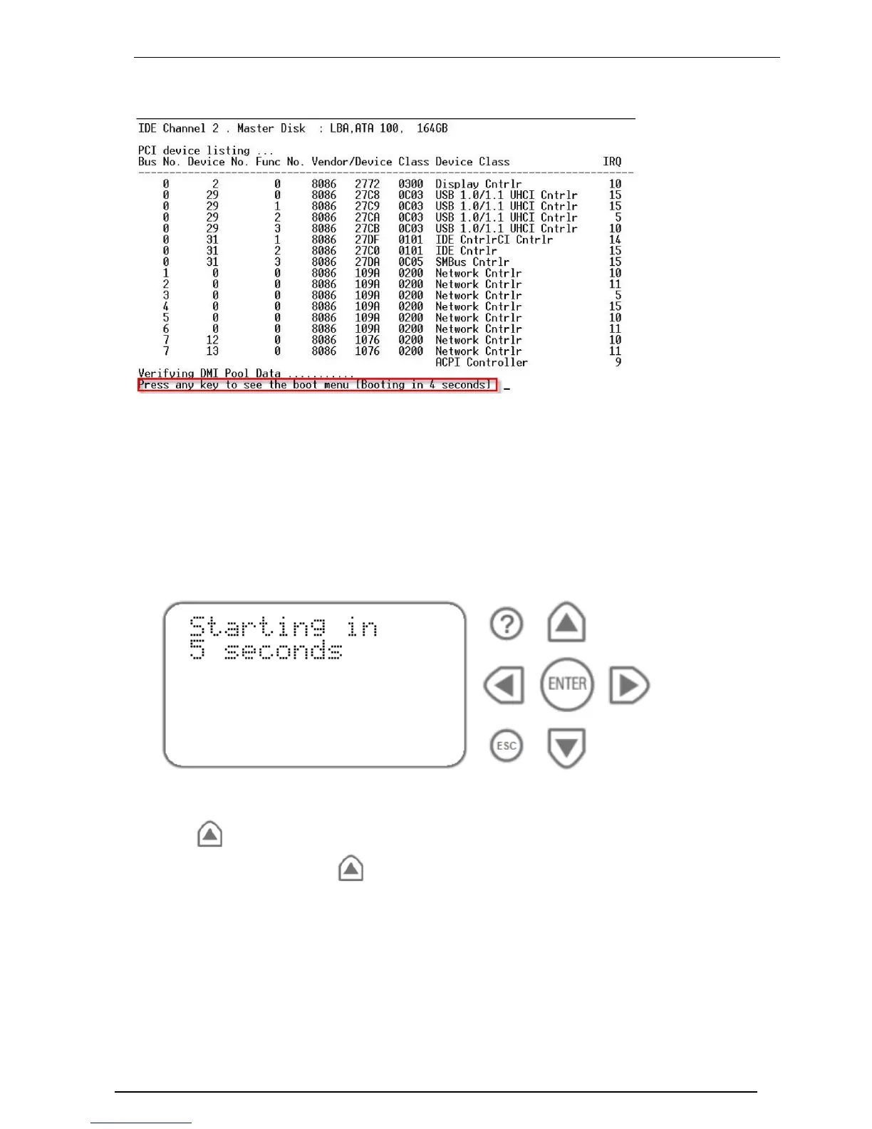 8. At this point, you have approximately four seconds to hit any key to activate the Boot menu.