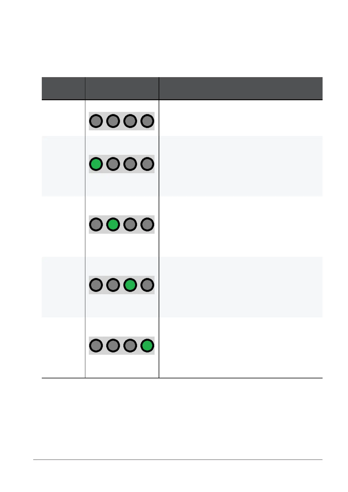 0 All LEDs are off Port LEDs show the state of physical ports.