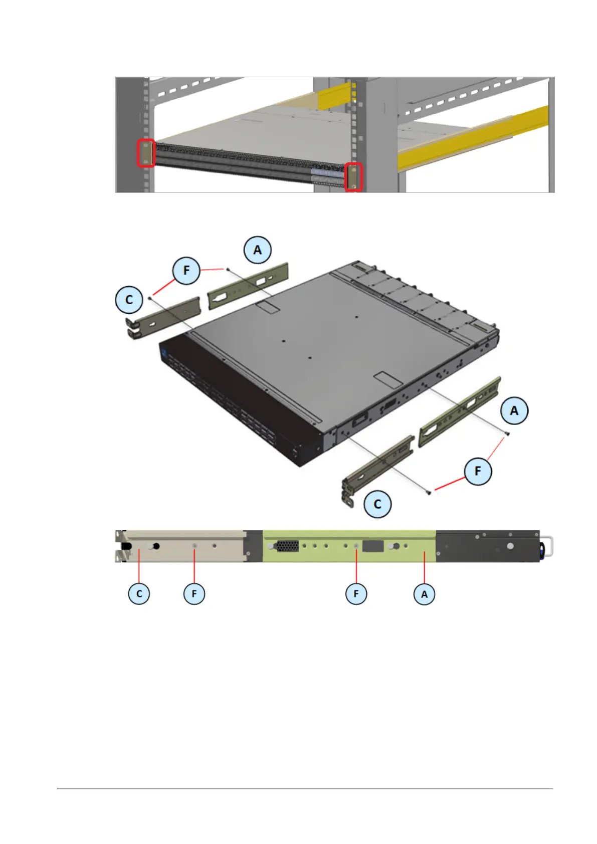 Installation Option 2 - Attaching the mount rail ears (C) near the front panel