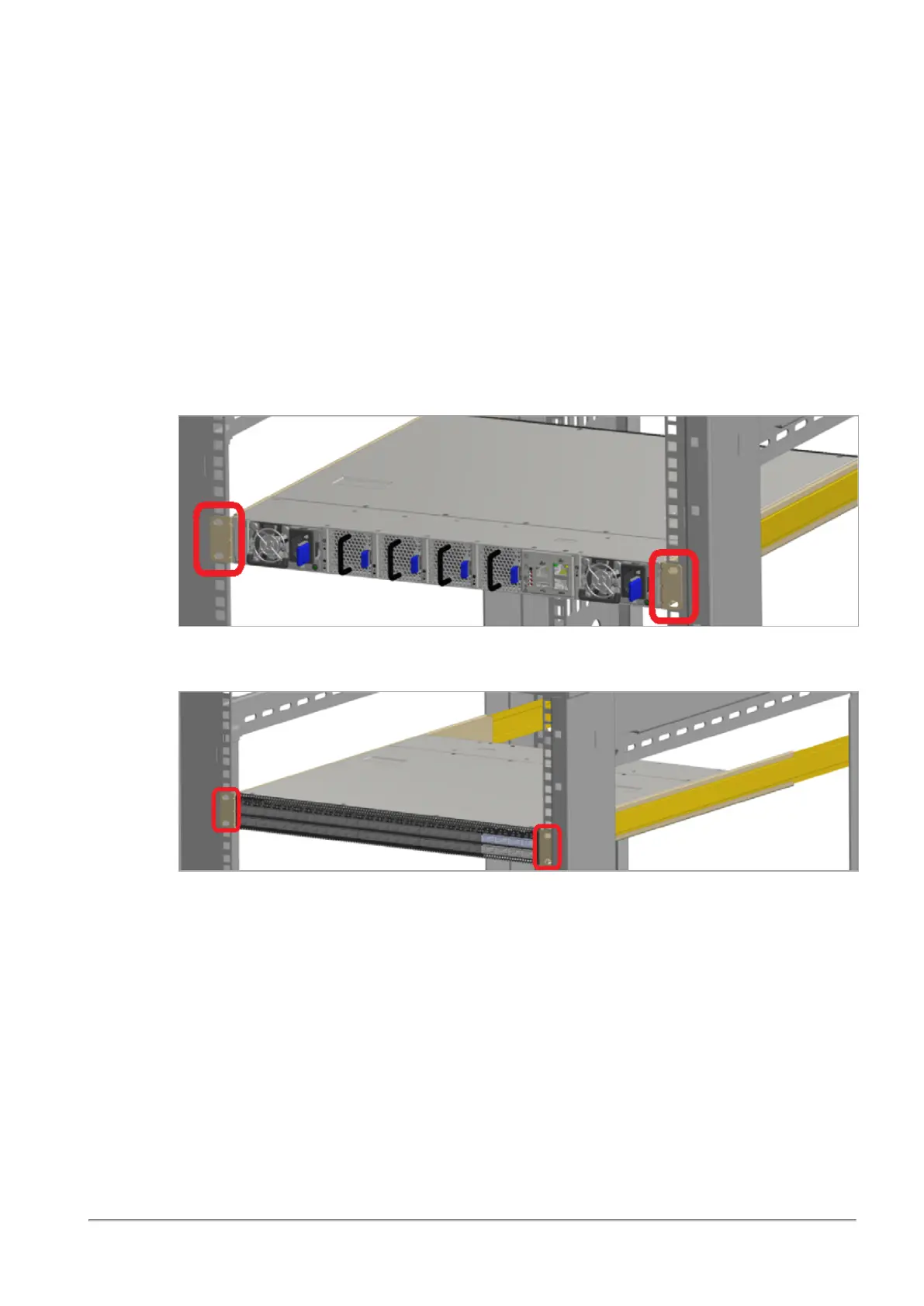 Installation Option 1 - Attaching the mount rail ears (E) near the rear panel